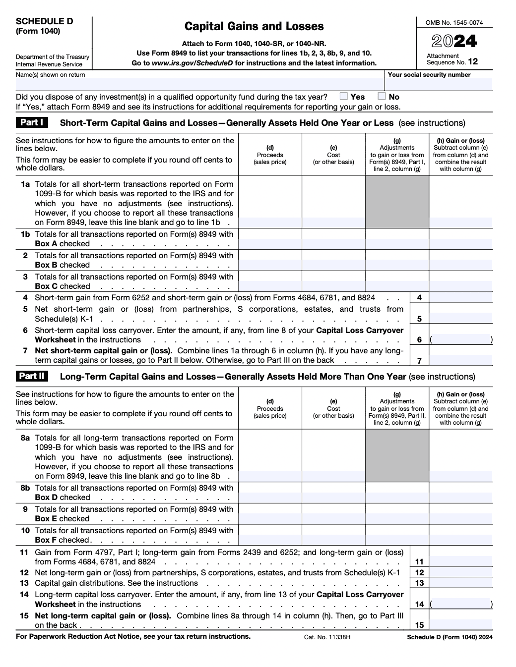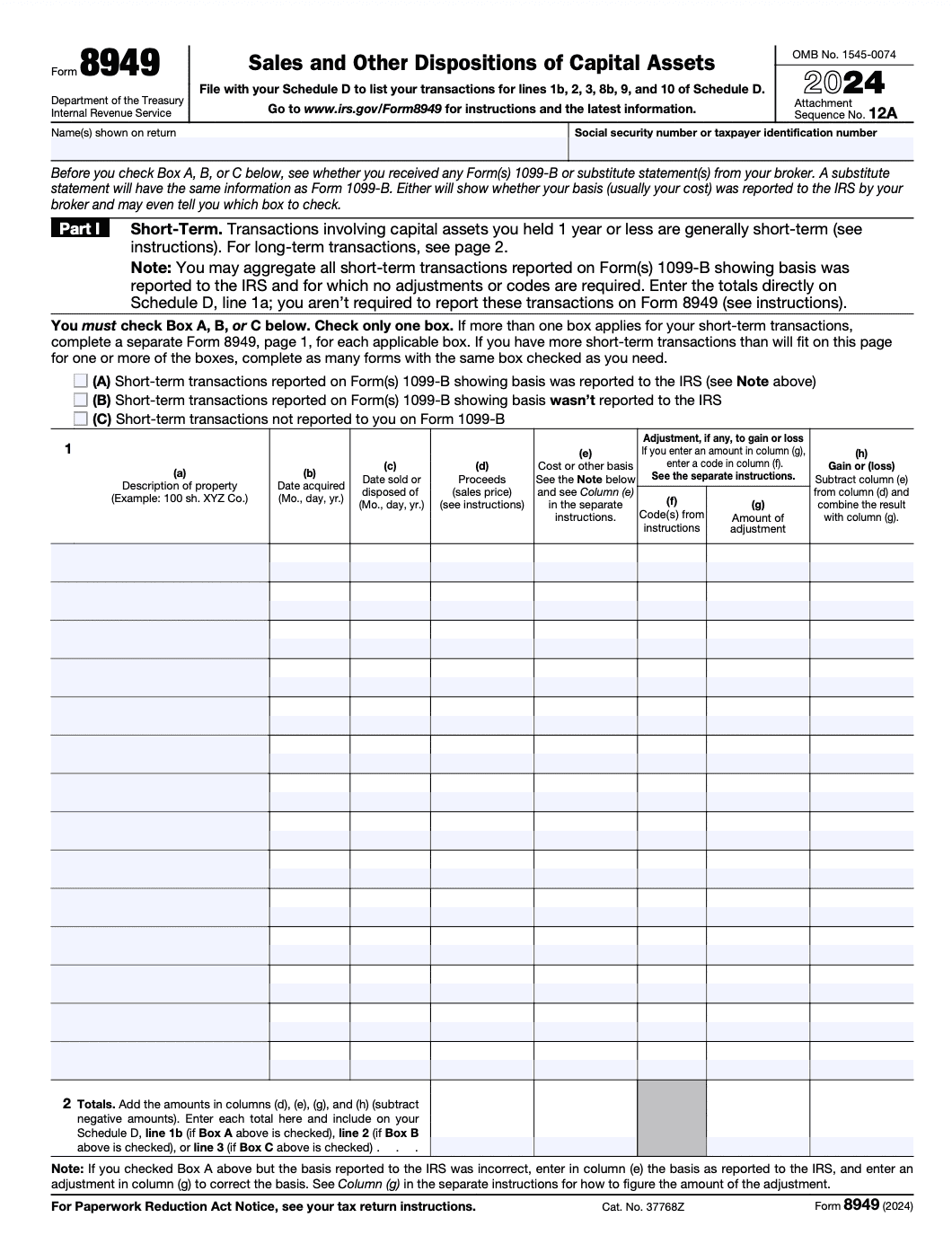 Form 8949 Used to report capital gains and losses from crypto transactions