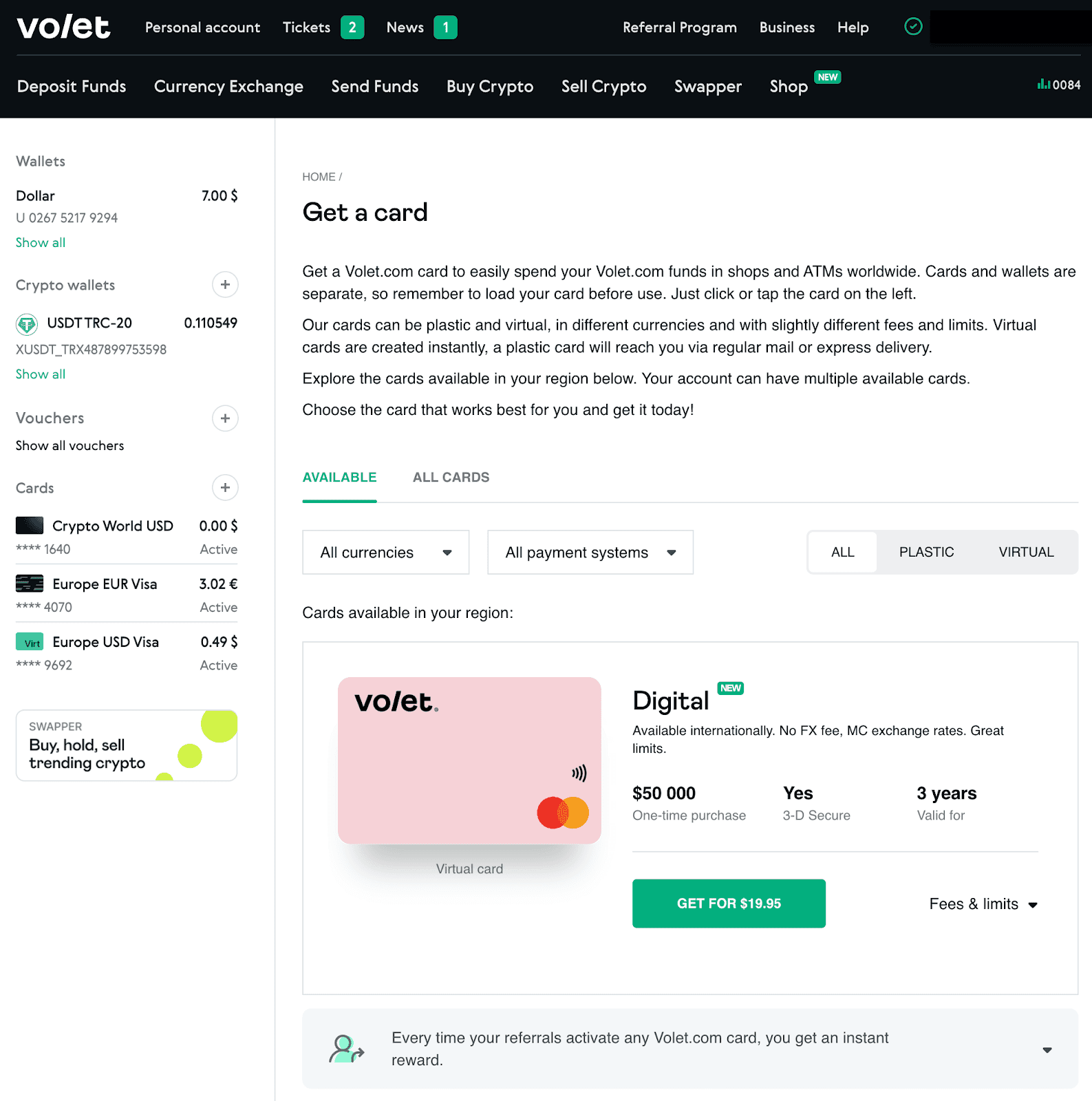 If you are not very familiar with Volet.com, you may think it’s a wallet known for its cryptocurrency features and therefore is mostly for crypto and about crypto. While it is indeed popular in the cryptocurrency community, Volet.com can also be a low-fee, easy to use tool for your everyday payments. Shopping with a plastic or digital card, getting cash at ATMs, moving money to your regular bank account or credit/debit card to pay the bills — Volet.com can help you with all of that, and more!